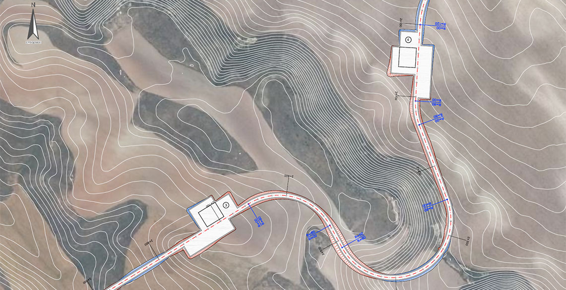 En particular, en el proyecto se definieron el movimiento de tierras, firmes, drenaje longitudinal y obras de fábrica transversales de la red de caminos, así como el movimiento de tierras, afirmado y drenaje de las plataformas.